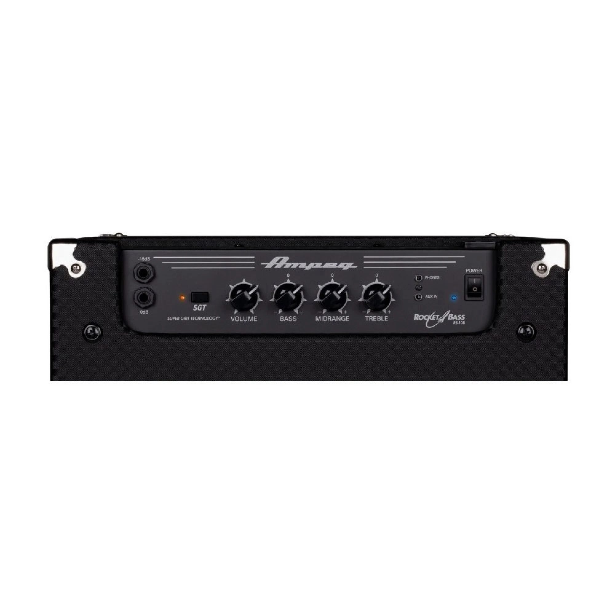 El RB-108 te permite moldear tu tono con facilidad gracias a su ecualizador clásico de 3 bandas. Pero la verdadera joya es la nueva sobremarcha Super Grit Technology™ (SGT™), que te permite marcar el legendario drive de Ampeg, desde un ligero crunch hasta una distorsión potente, todo con un simple giro.