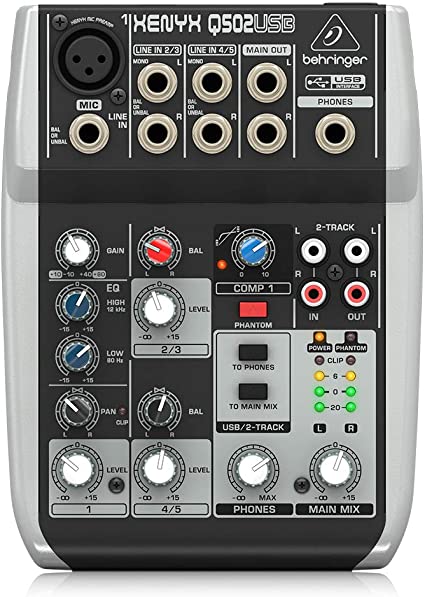 Mezclador premium de 5 entradas y 2 buses con preamplificador y compresor de micrófono XENYX, ecualizador británico e interfaz USB/audio.